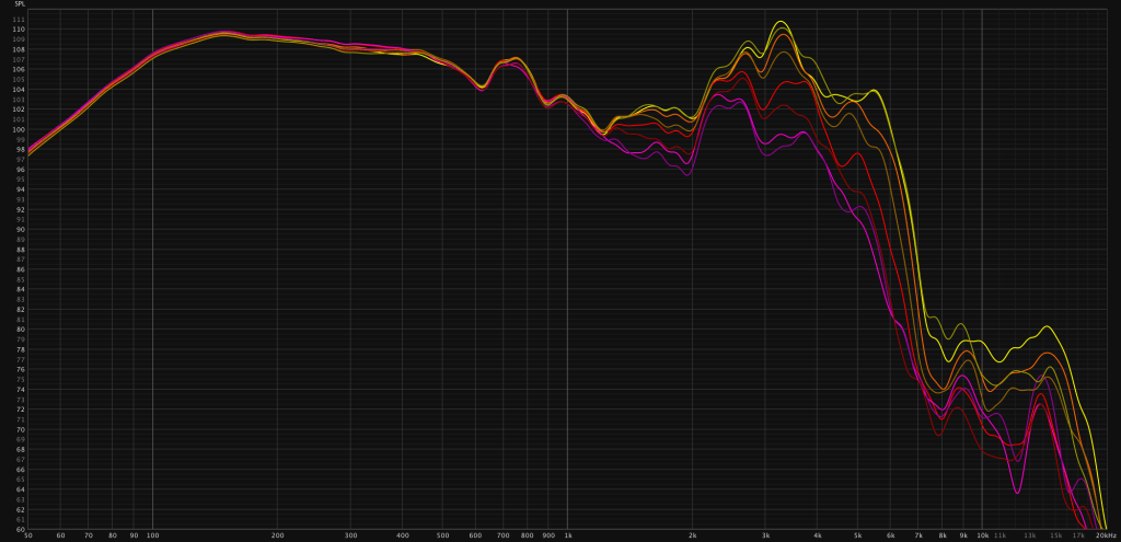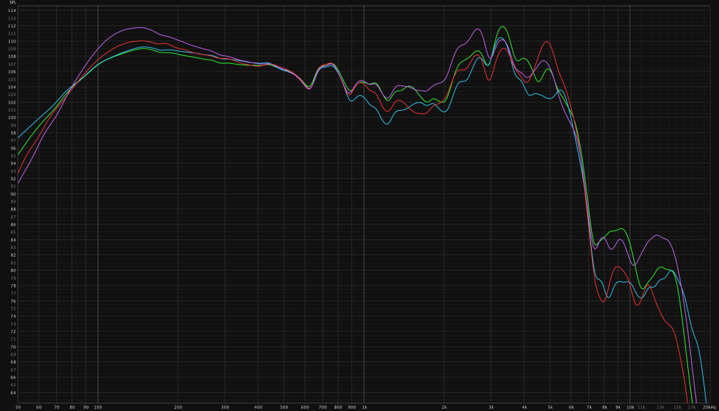 Before looking at the graphs: To increase visibility the graphs are smoothed either 1/6 or 1/12 of an octave. While this is inaccurate, one can identify trends more easily than exact differences.